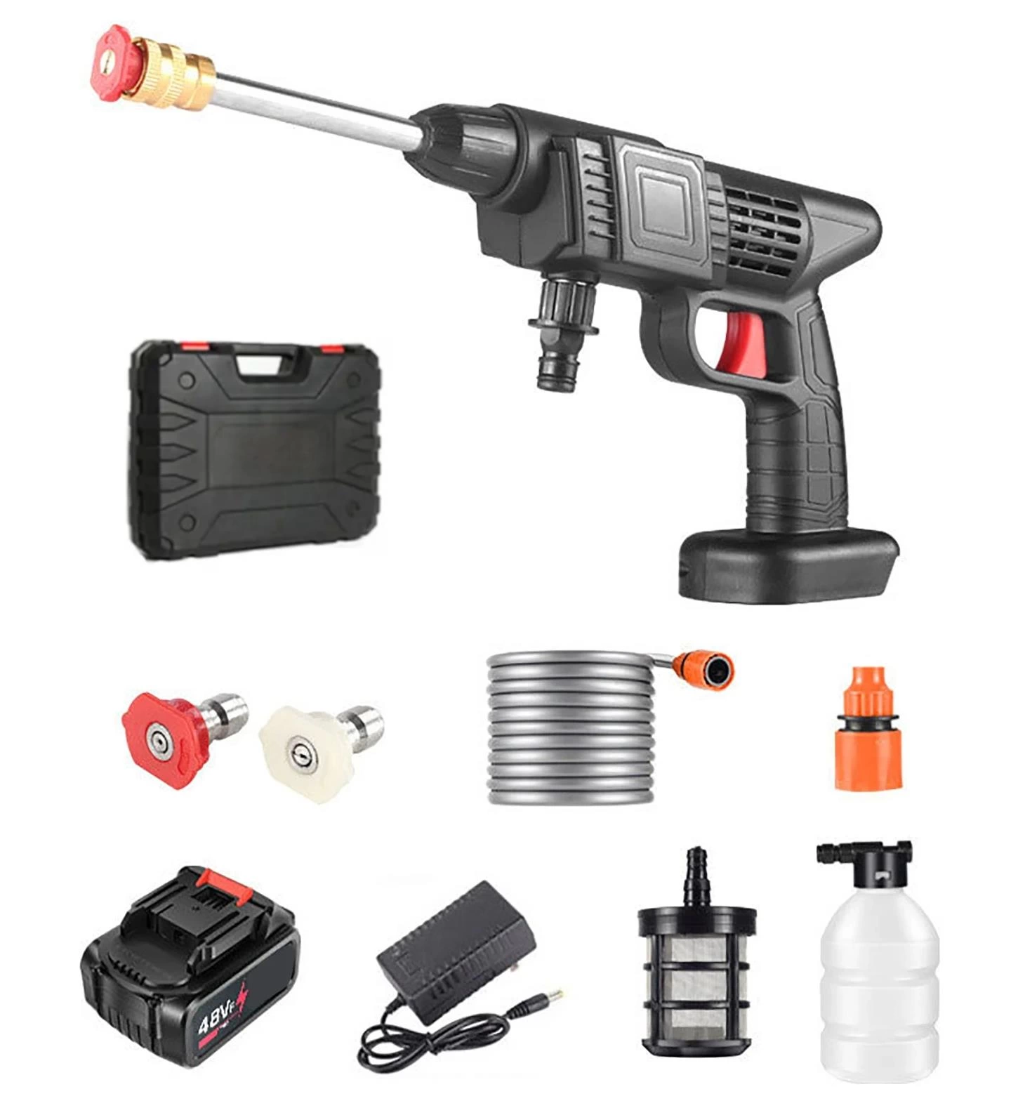 4.Kolay kullanım için köpük haznesi, çok işlevli uzun aluminyum gövde, göbek fırçası, 5M hortum püskürtme sı eki ile donatılmıştır