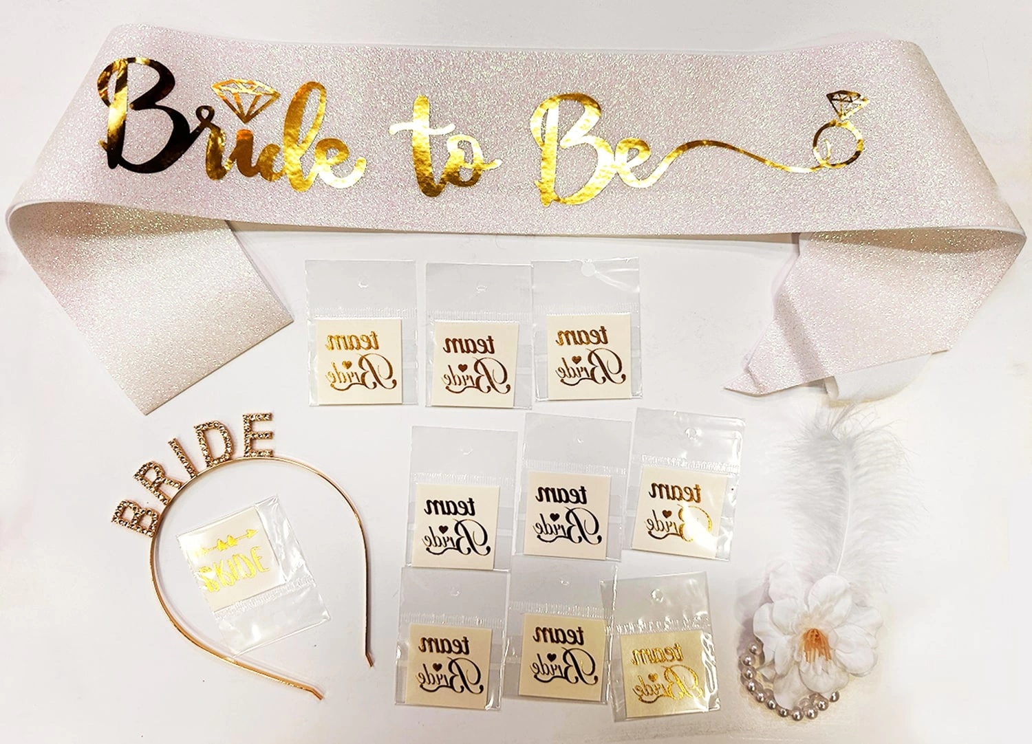 Harika bir gelin partisi için ihtiyacınız olan her şey bu sette Parlak altın rengi ile göz kamaştıran bu set, partiye katılan herkesi büyüleyecek.