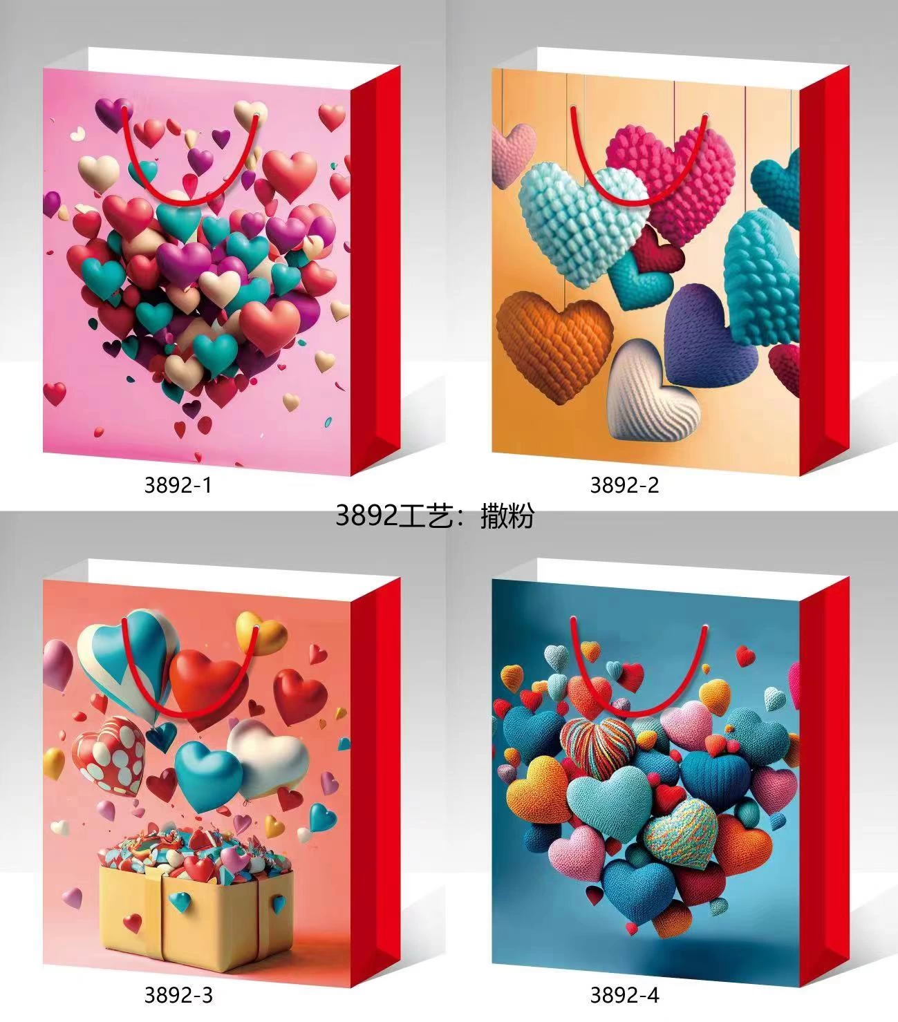 Büyük boy karton çanta 4 farklı modele sahip ve her bir modeli oldukça kalp motifleri oldukça şık modellerdir.