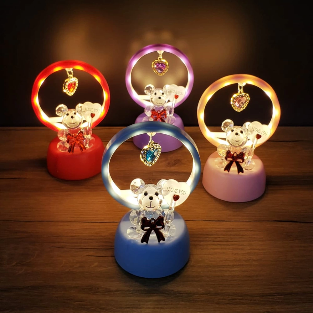Karanlıkta yakıldığı zaman ortama hoş bir görünüm veren ışıklı ayıcık biblo.