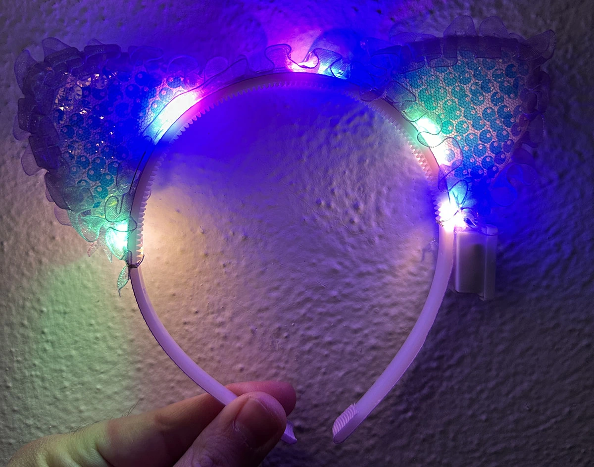 Kenarları Dantelli Mor Pullu Payetli Led Işıklı Kedi Kulak Taç ile: