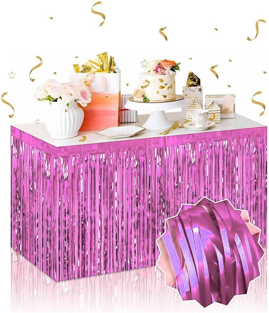 Partilerinizin havasını anında değiştirecek göz alıcı bir detay 75 x 275 cm ölçülerindeki kendinden yapışkanlı pembe metalize püsküllü masa eteği, doğum günü, bekarlığa veda, baby shower, nişan, yılbaşı, mezuniyet ve temalı etkinlikler için mükemmel bir tercihtir.