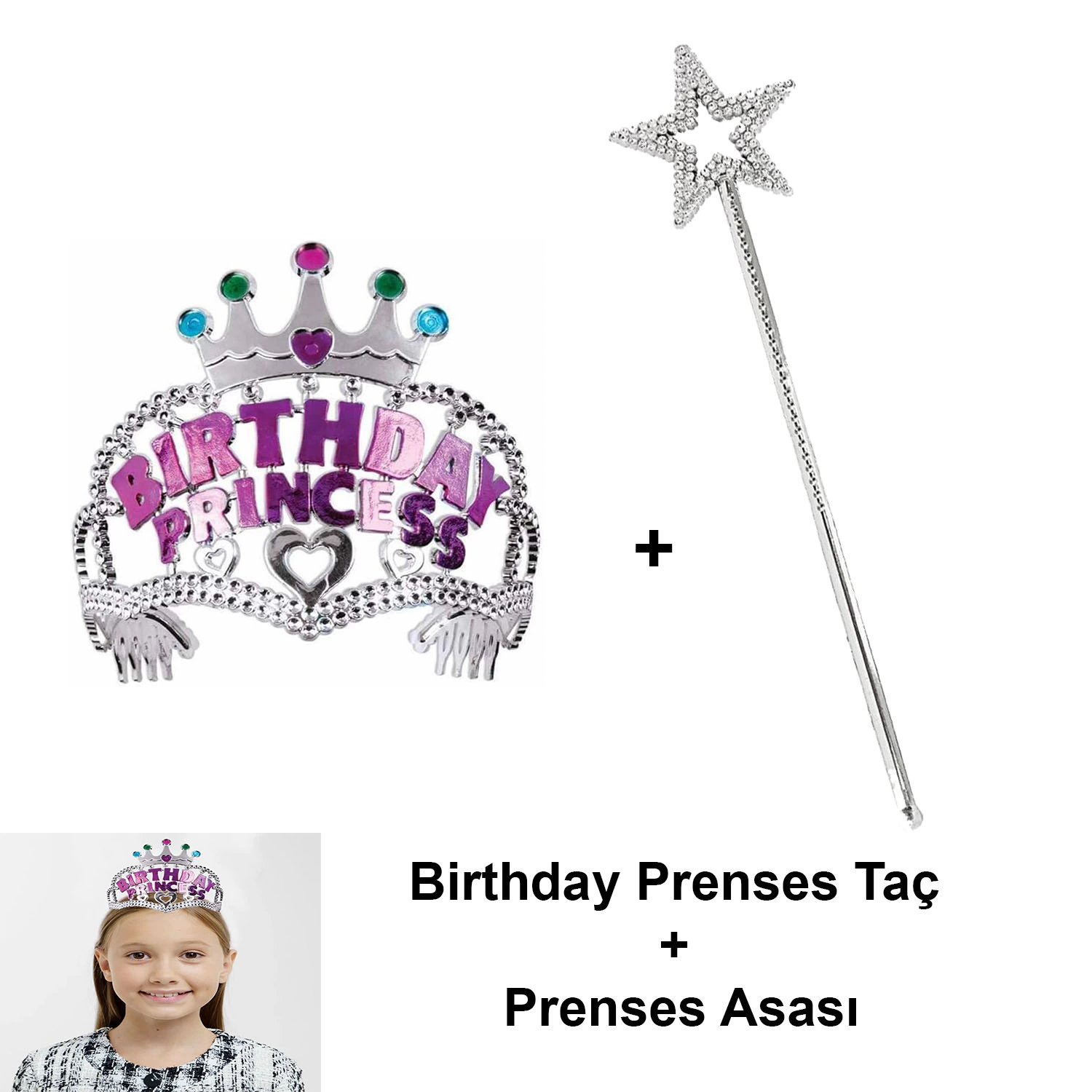 1 "Birthday Princess" yazılı taşlı prenses tacı (çocuk boy)