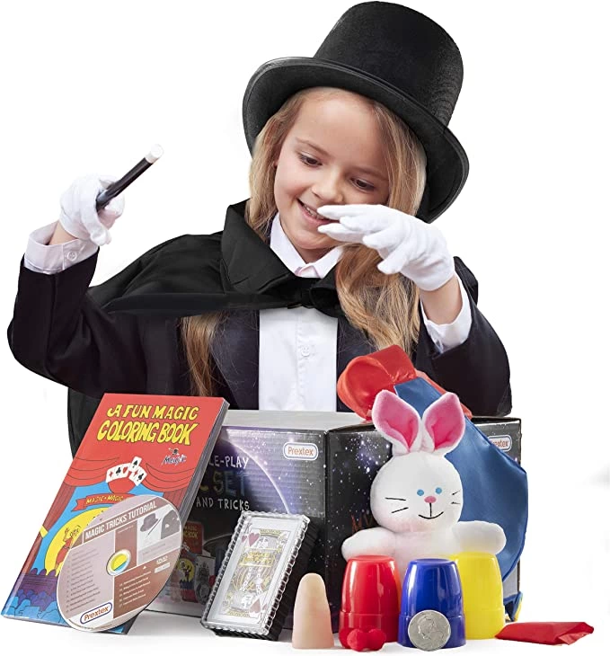 Çocuk Boy Siyah Sihirbaz Pelerini Siyah Sihirbaz Şapkası ve 7 Parça Sihirbazlık Oyunları