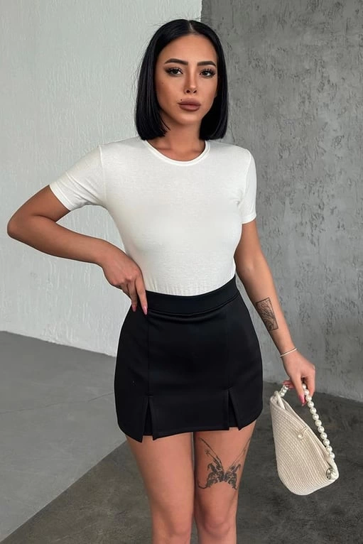 -Bu eşsiz kısa kollu bisiklet yaka likralı ekru viskon penye body, gardırobunuzun vazgeçilmez parçalarından biri olmaya aday! Doğal zarafeti ve rahatlığı bir araya getiren bu body ile her an tarzınızı yansıtabilir ve kendinizi özgür hissedebilirsiniz.