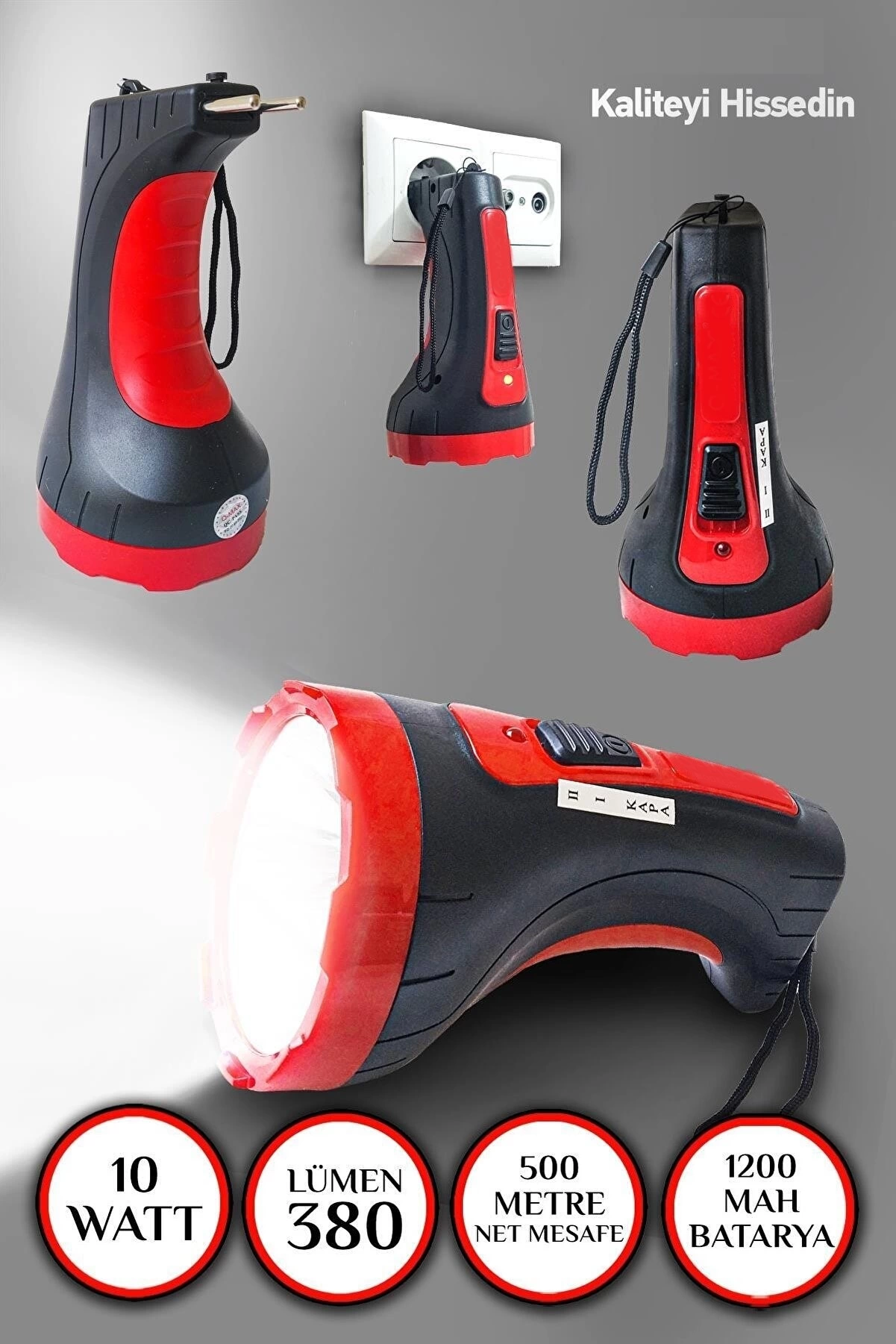 ŞARJLI 10W PROJEKTÖR LED EL FENERİ YAN AYDINLATMALI UZUN MENZİL KAMP BEKÇİ FENERİ