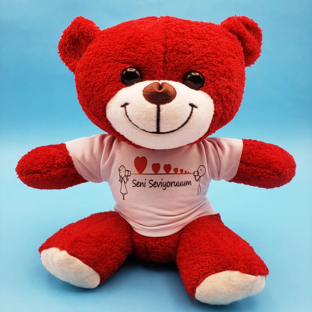 Tişörtlü Peluş Ayıcık Üzerinde Seni Seviyorum Çiftler Bulunmaktadır. Farklı Tişört Seçenekleri Ve Modelleri Mevcuttur.