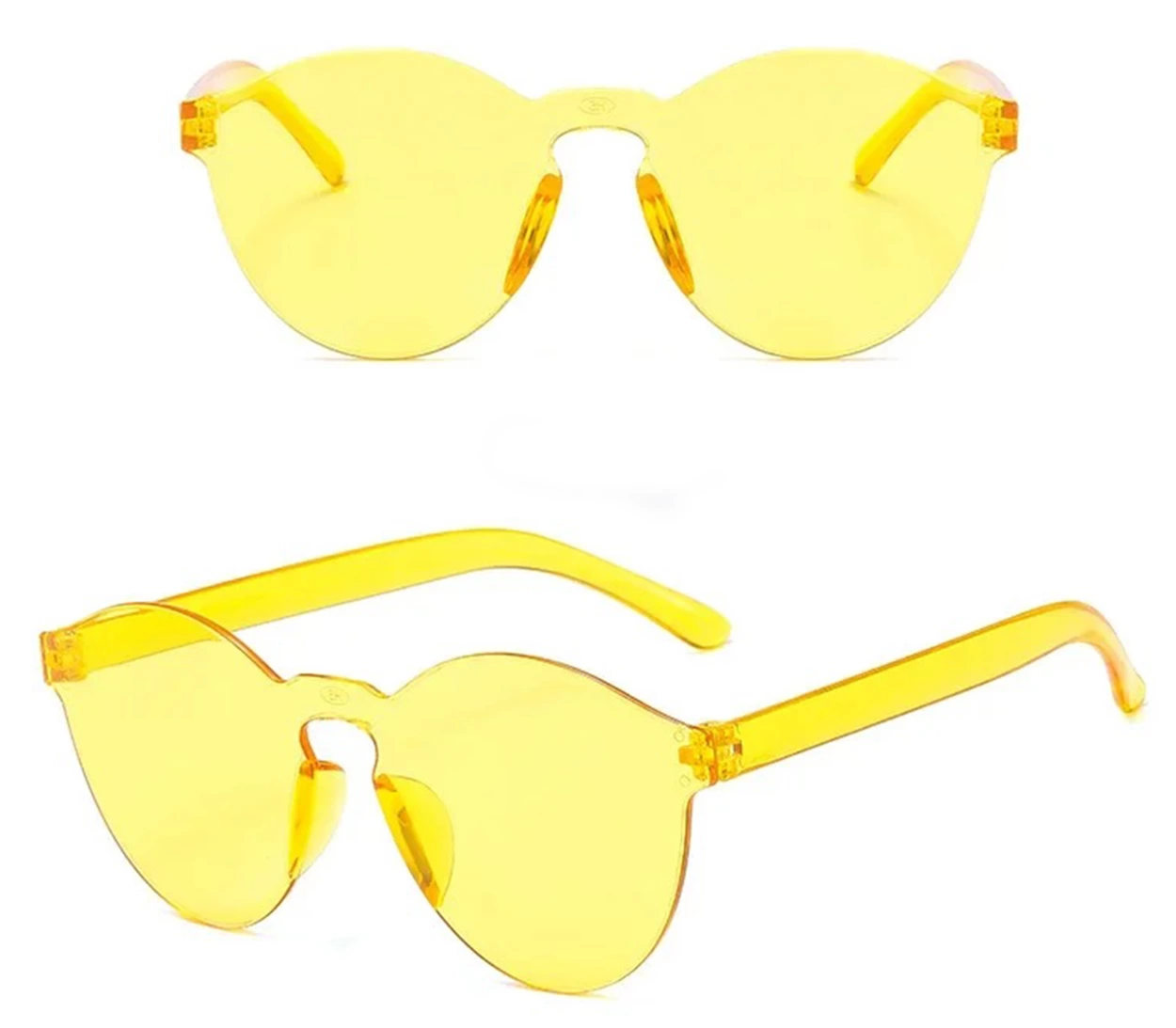 Dayanıklı sert mika malzemeden üretilen bu gözlük, 5x14 cm ölçüsüyle yüz hatlarına uyumlu olup retro ve modern tarzı bir arada sunar. Çerçevesiz tasarımıyla dikkat çekici bir aksesuar olan sarı şeffaf lens, enerji dolu ve iddialı bir stil yaratmak için idealdir.