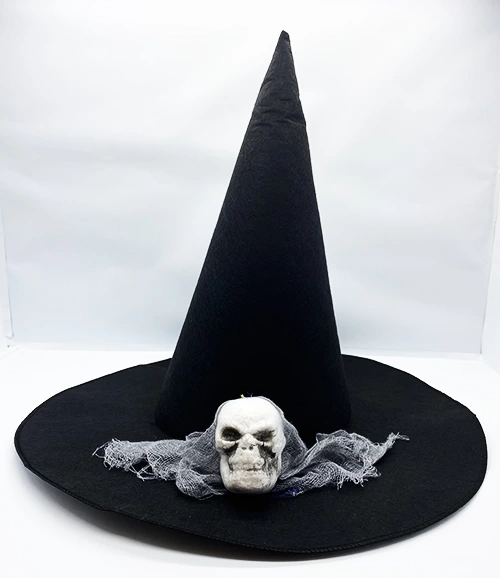 Siyah Renk Kuru Kafa Görselli Cadı Şapkası
