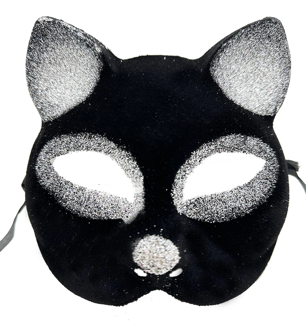 Balolar ve özel günler için mükemmel bir aksesuar olan Siyah Renk Gümüş Simli Süet Kedi Maskesi ile göz kamaştırın