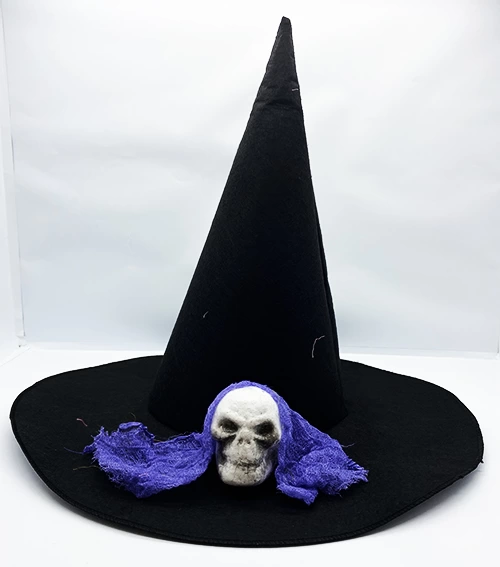 Siyah Renk Kuru Kafa Görselli Cadı Şapkası