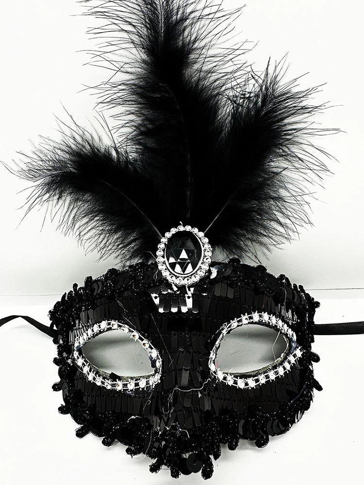 Siyah Renk Payetli Pullu Tüylü Parti Maskesi