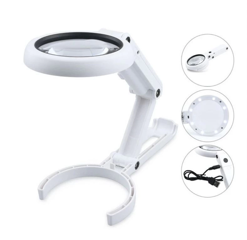 3. Katlanmış el ve katlanmış elücretsiz 2in1 büyüteç ile 90mm lens 3.5X büyütme ve 10X büyütme için 19mm lens.